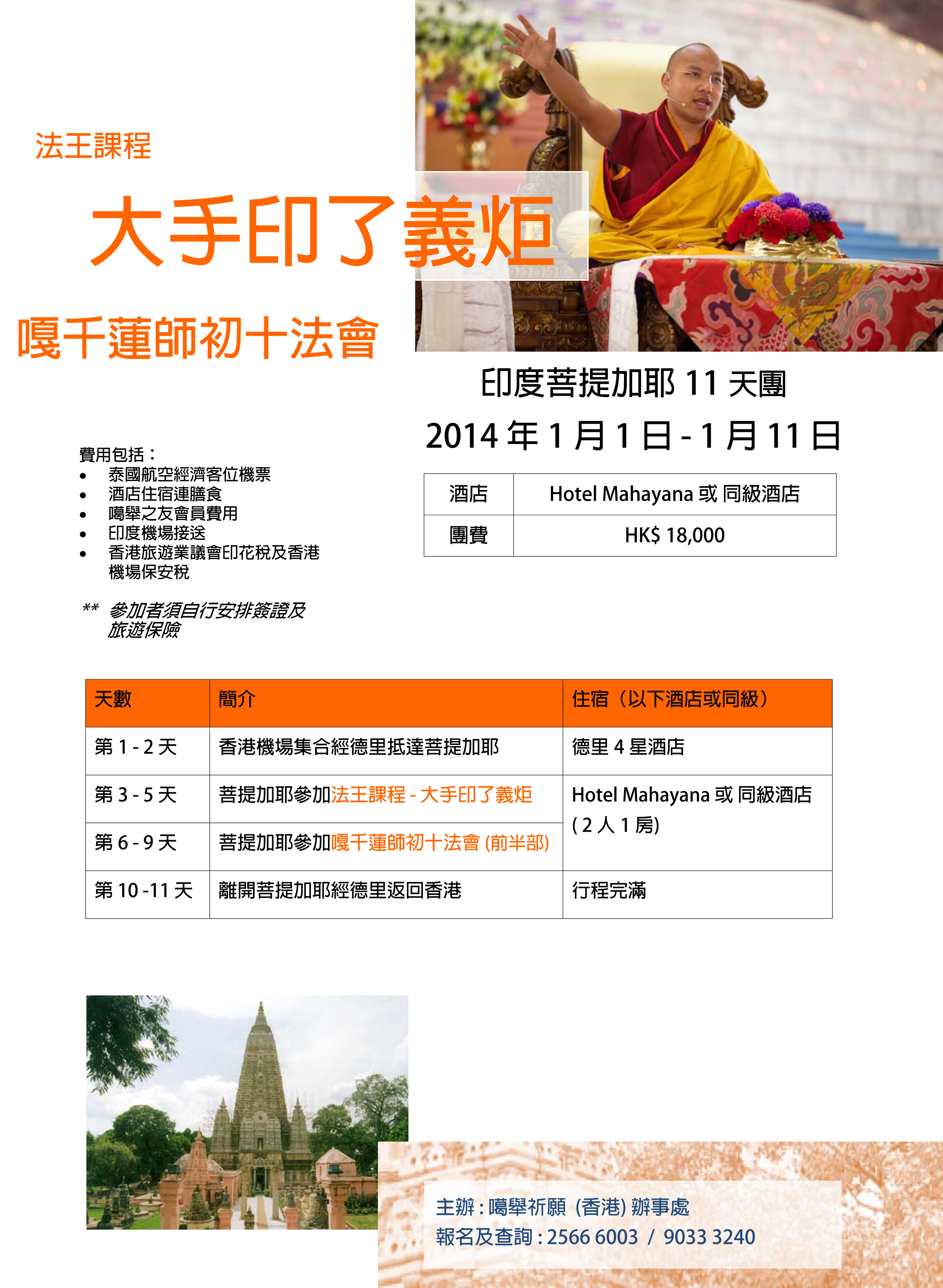 The organizing committee in Hong Kong will provide updates of the event via the social platform (facebook), to allow more people to take part in the Hong Kong Kagyu Monlam and spread the Six Syllable Mantra of Love together.