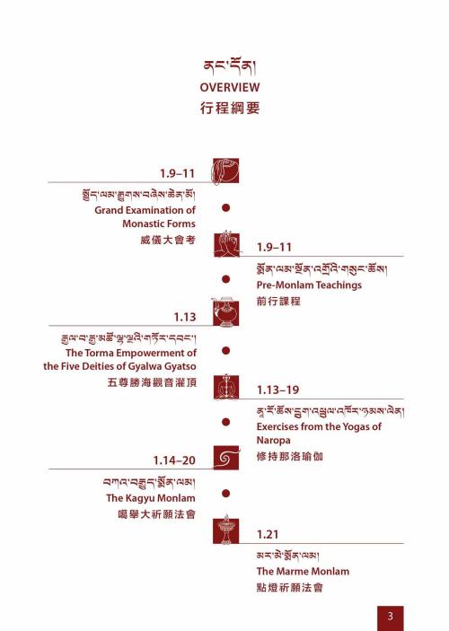 第三十六屆噶舉大祈願法會 – 行程網要 / 36th Kagyu Monlam Chenmo – Schedule Overview