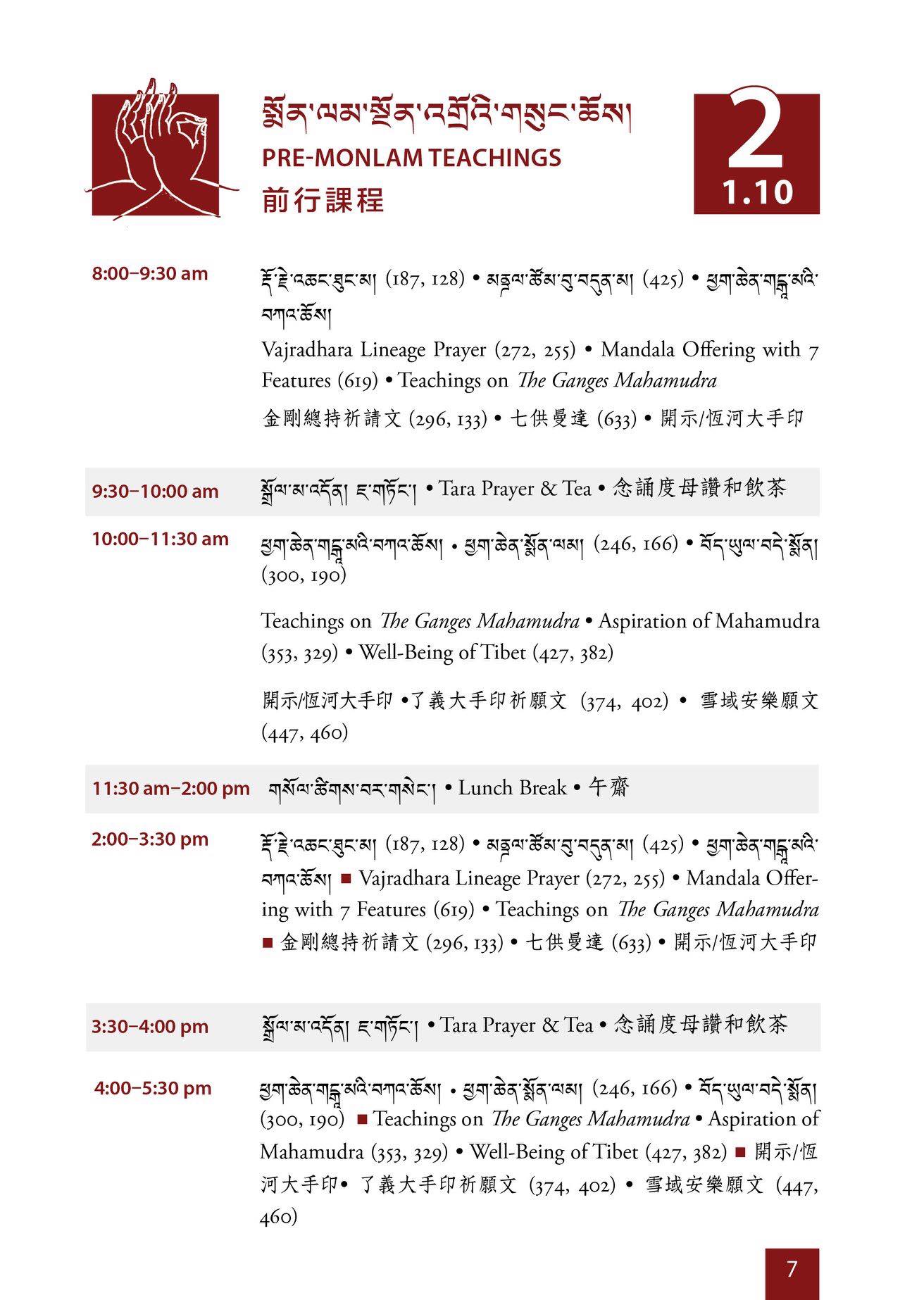 第三十六屆噶舉大祈願法會 – 行程網要 / 36th Kagyu Monlam Chenmo – Schedule Overview
