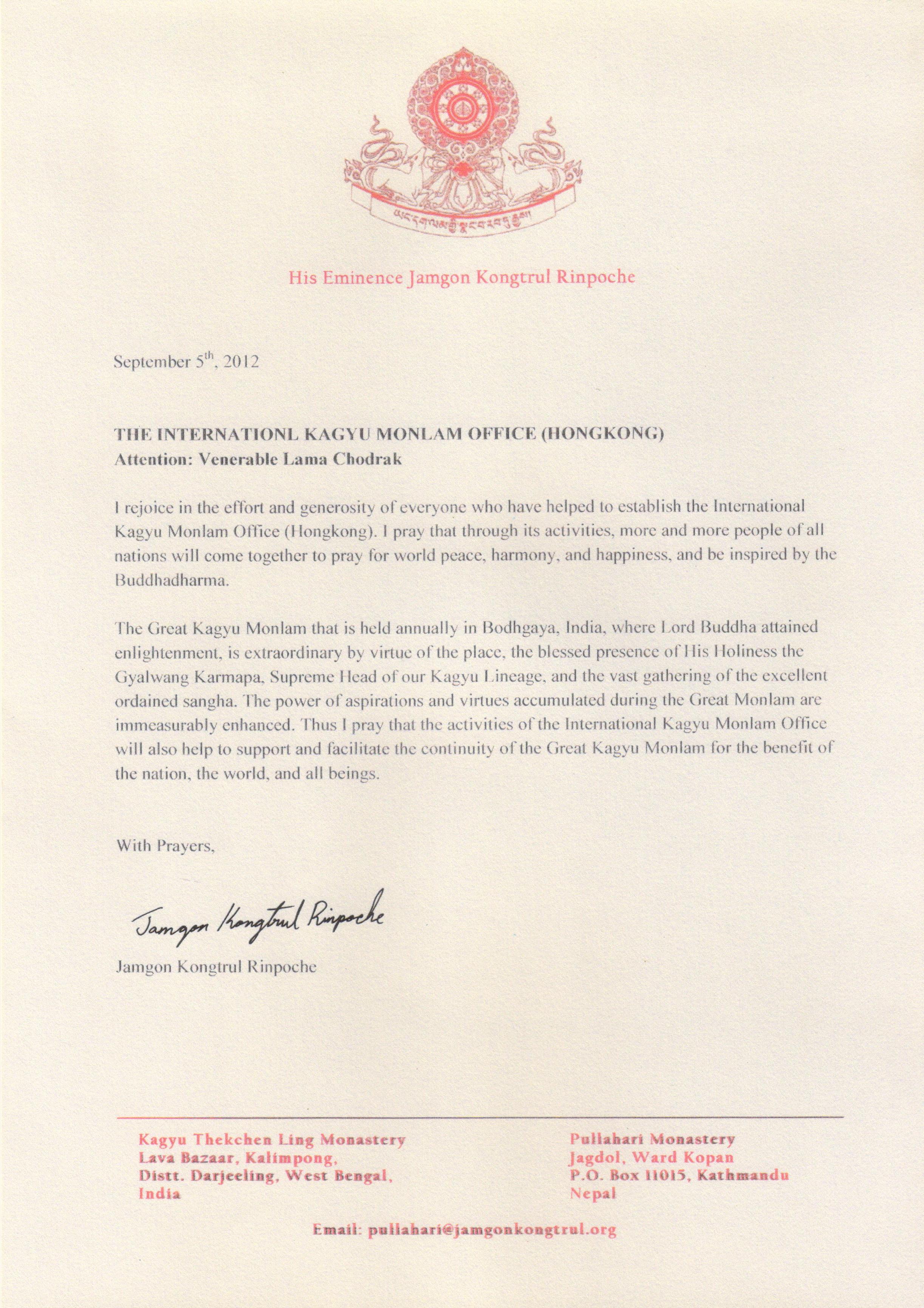 Letter from His Eminence Jamgon Kongtrul Rinpoche >> Chinese Translation Share this: Click to share on X (Opens in new window) X Click to share on Facebook (Opens in new window) Facebook Like Loading...
