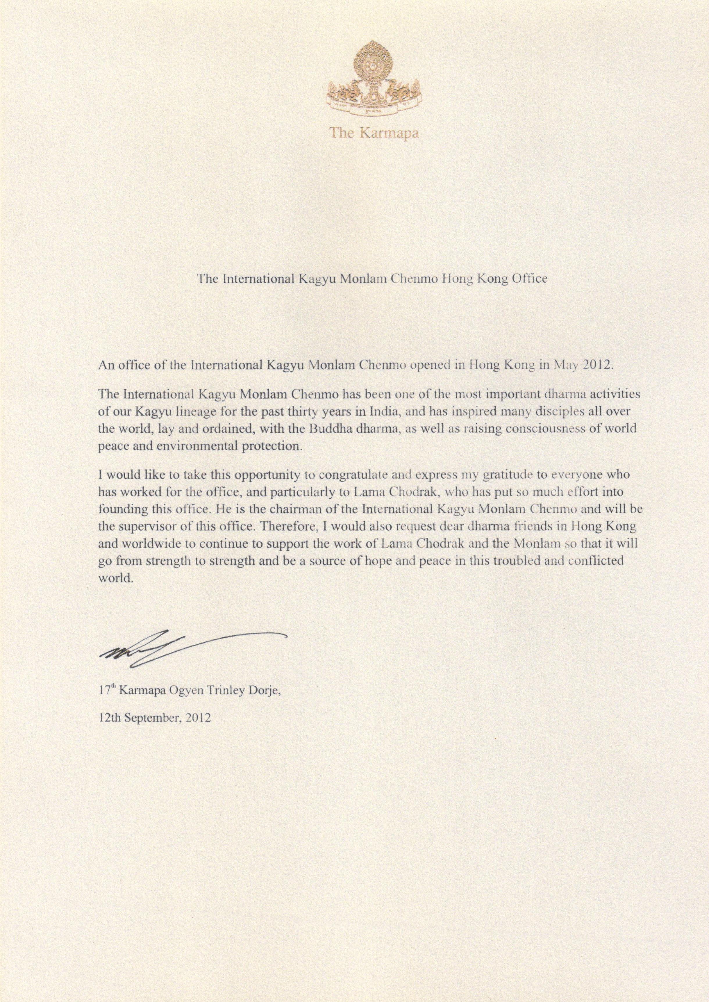 Letter from His Holiness Gyalwang Karmapa >> Chinese Translation Share this: Click to share on X (Opens in new window) X Click to share on Facebook (Opens in new window) Facebook Like Loading...